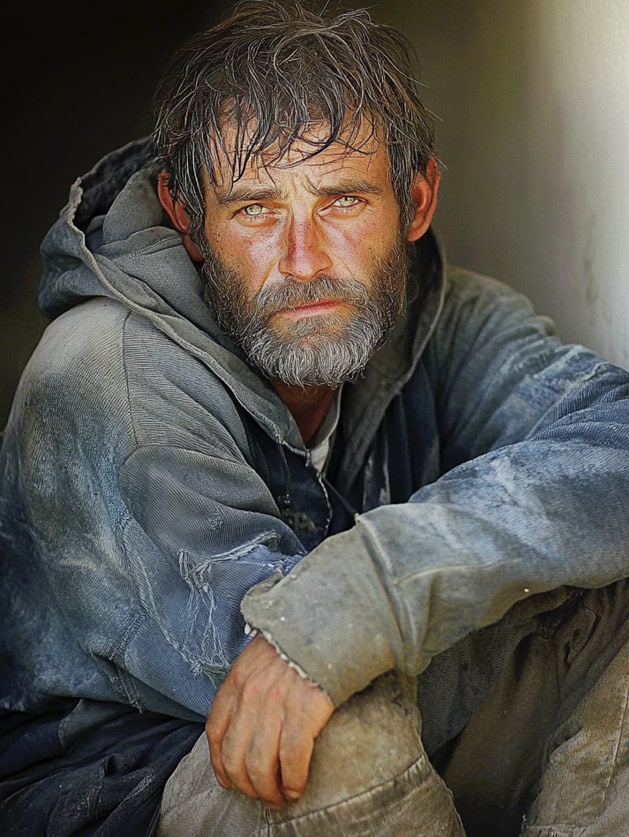 Una sera d'inverno, mentre camminavo per il centro città, il mio sguardo incontrò quello di un uomo seduto sul marciapiede. I suoi occhi, sorprendentemente calmi nonostante la povertà, sembravano riflettere un passato lontano.