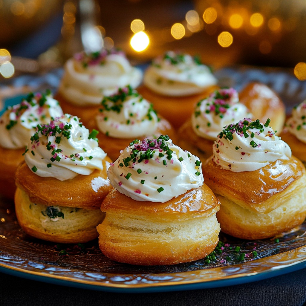 Garnir les choux à l’aide d’une poche à douille en les coupant délicatement ou par le dessous.