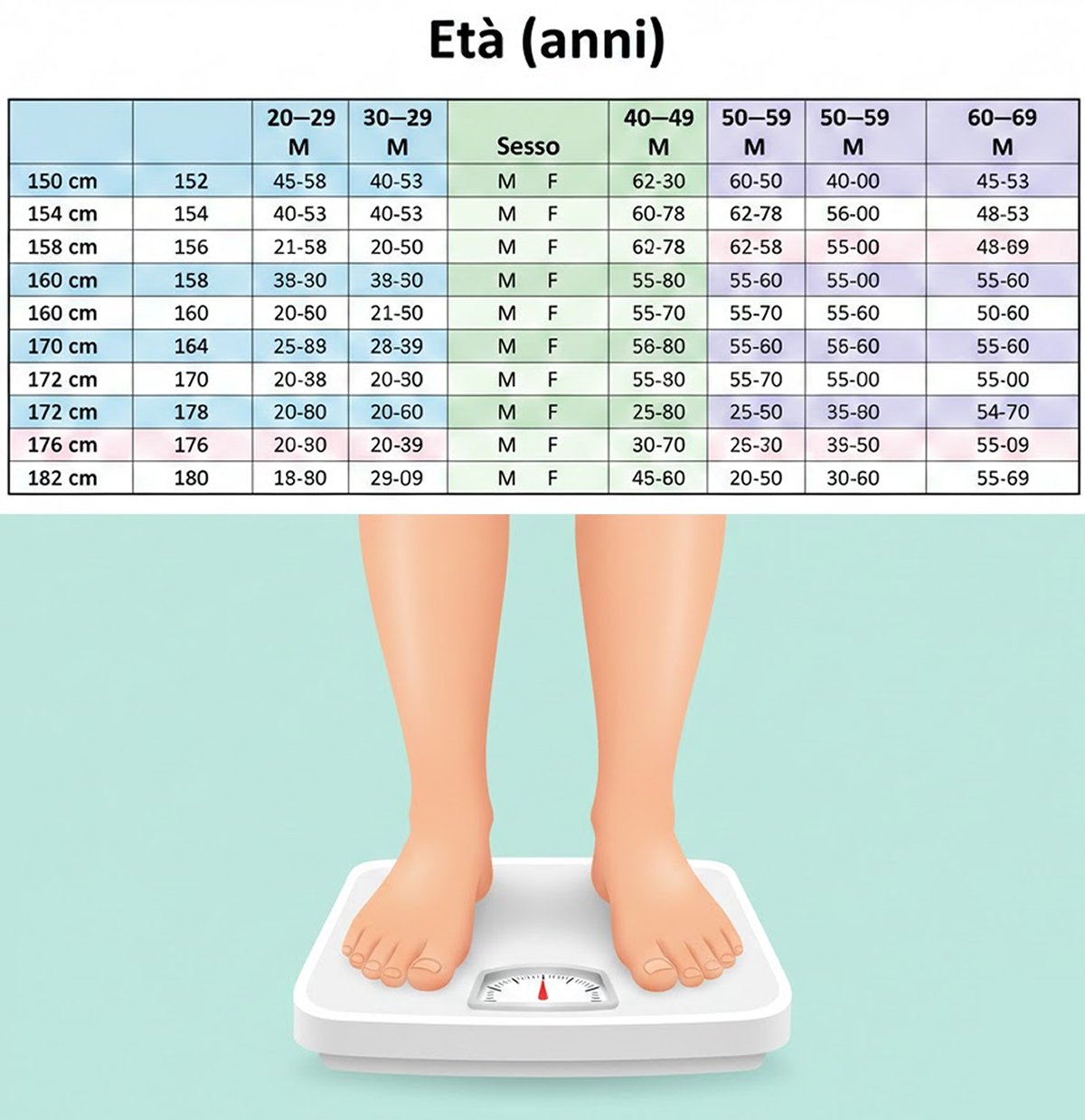 Una delle grandi incognite in relazione al peso è sapere qual è quello adeguato a seconda della nostra statura. Non esiste un peso o una misura standard, ma dipende da diversi fattori come la struttura ossea, il tipo di corpo o indici di massa muscolare. Tuttavia, esistono tabelle che indicano, a seconda della statura, il peso medio che dovremmo avere.