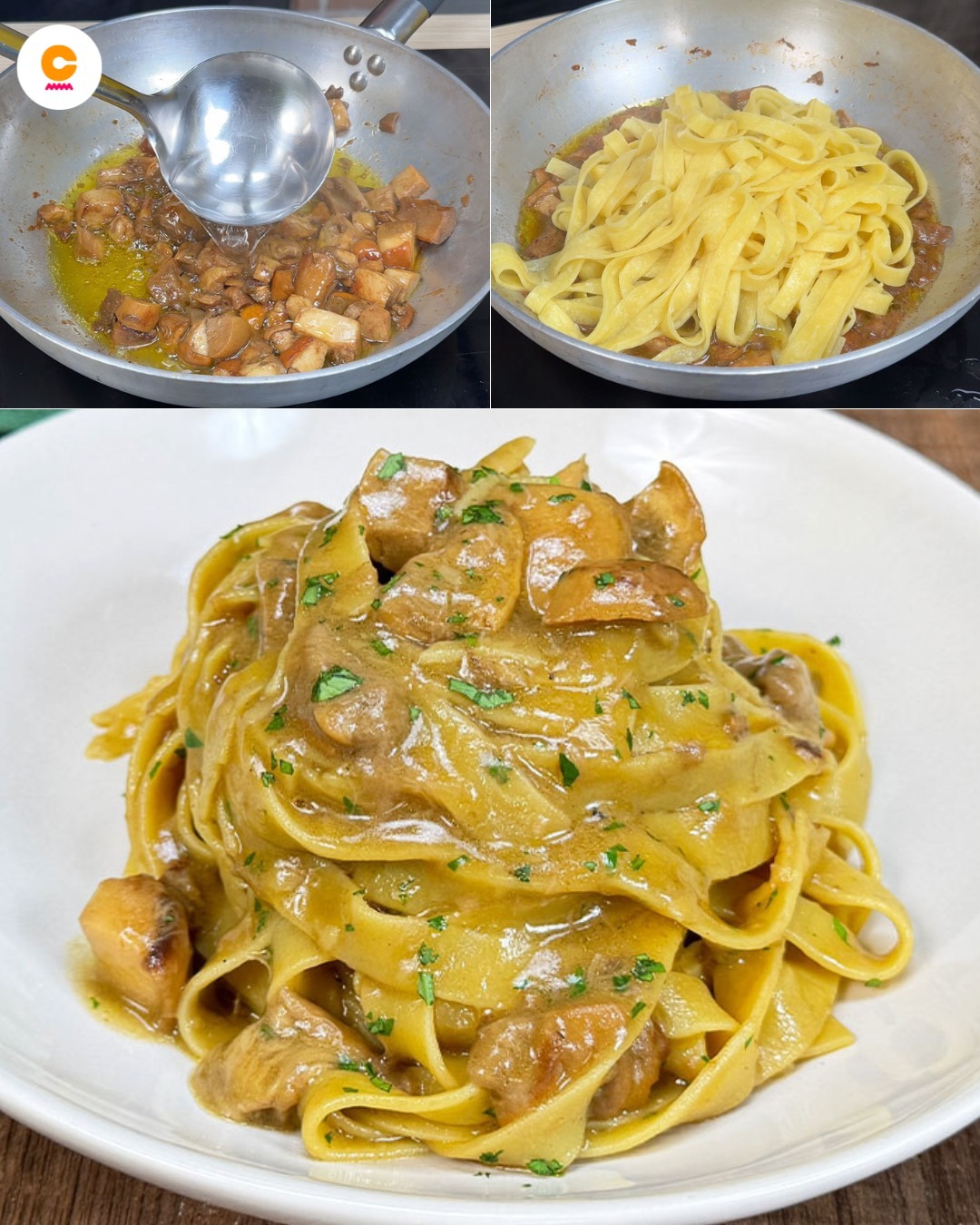 Le tagliatelle ai funghi porcini sono un classico primo piatto autunnale, una ricetta veloce e prelibata, realizzata qui dalla nostra Julia con funghi porcini surgelati, aglio, olio, prezzemolo e tagliatelle fresche all'uovo: ruvide, porose e perfette per trattenere tutto il condimento.
