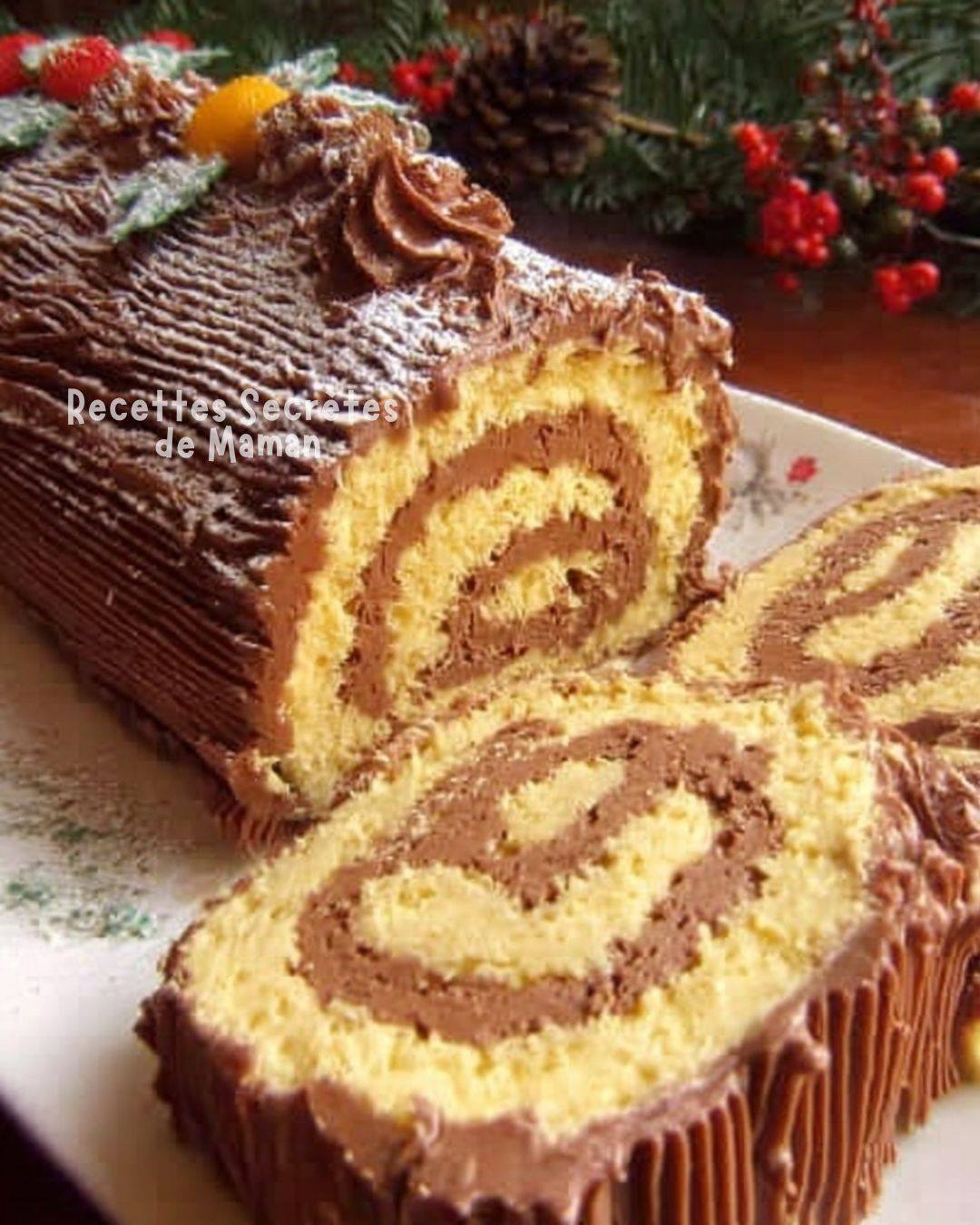 Bûche de Noël traditionnelle, roulée, moelleuse et garnie d’une crème au beurre au chocolat fondante. Une recette maison intemporelle et gourmande.